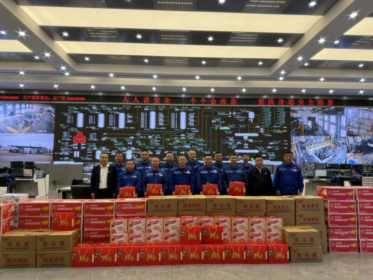 10月6日,天元公司董事、總經(jīng)理喬柏,黨委委員、副總經(jīng)理趙耀飛檢查節(jié)日期間安全生產(chǎn)工作并慰問(wèn)節(jié)日期間堅(jiān)守崗位的干部職工,為他們送去慰問(wèn)品。喬柏一行先后前往各生產(chǎn)裝置區(qū)、中心控制室以及職工餐廳,查看節(jié)日期